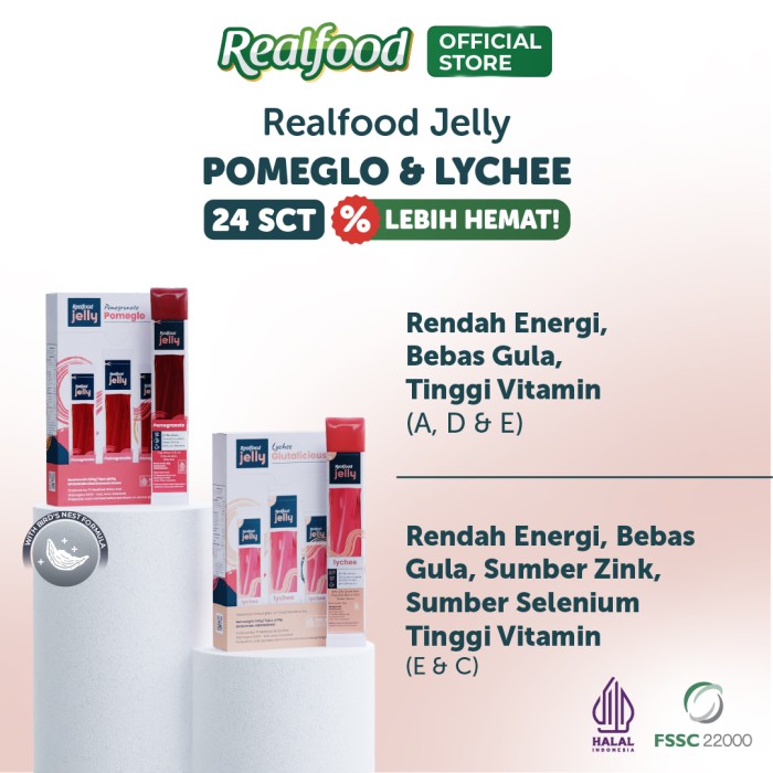 – Realfood Jelly dapat disimpan di suhu ruangan ataupun lemari Es